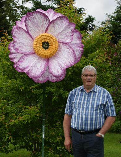Fleur de pivoine en pin sculptée à l’occasion de l’événement ’Pivoine en cavale ‘ en Beauce en 2013. |